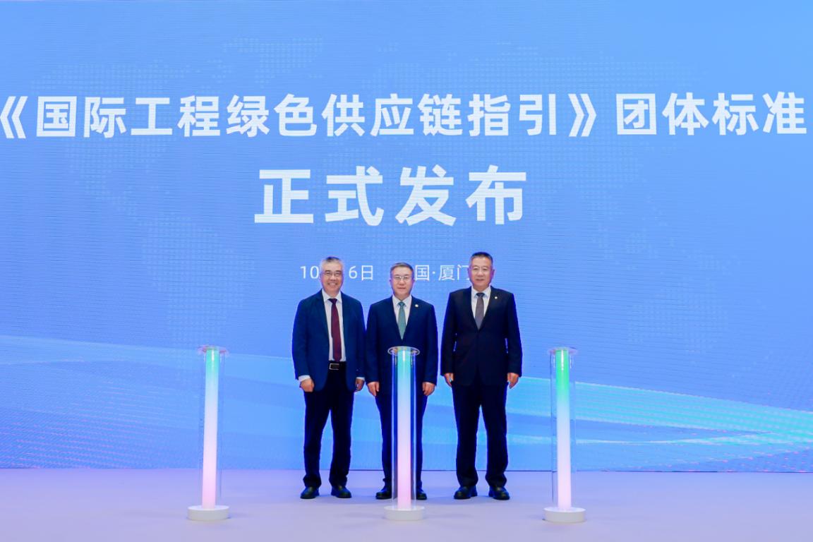 开幕式期间,中交集团与中国对外承包工程商会、山东大学共同发布了《国际工程绿色供应链指引》团体标准。《指引》团体标准可用于指导中国对外承包工程企业构建绿色供应链管理体系,推进绿色供应链实践;可作为我国企业参与国际工程项目生命周期中的部分阶段参考;可作为对外承包工程企业实施国际工程绿色供应链管理评价的工具。