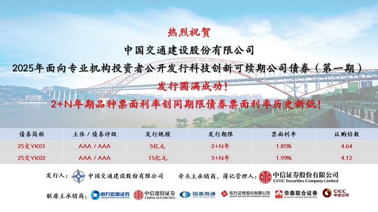 5月15日,中国交建在上海证券交易所成功簿记公司2025年面向专业机构投资者公开发行科技创新可续期公司债券(第一期),发行规模20亿元。这是公司本年度首次发行科技创新债券,募集的资金将重点用于科技创新平台建设、核心技术攻关等方面。