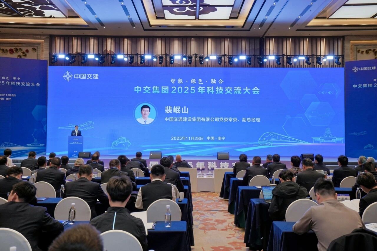 近日,以“智能·绿色·融合”为主题的中交集团2025年科技交流大会在广西南宁召开。本次大会目的是深入学习贯彻党的二十届四中全会精神,落实公司上半年生产经营工作会部署,加快培育形成新质生产力,助推“五全四大五型”战略布局落地。中交集团党委常委、副总经理裴岷山出席会议并讲话。中国工程院院士郑皆连,中国工程院院士、中交集团技术总监、首席专家汪双杰,重庆交通大学原校长唐伯明作主旨报告。同济大学教授葛耀君,北京绿色交易所副总经理王辉军参加会议。