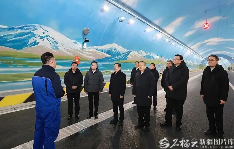 正式通车前,陈小江、艾尔肯·吐尼亚孜来到全长22.13公里的“世界最长高速公路隧道”天山胜利隧道中,实地察看隧道设计、内部结构等,详细了解项目建设、技术攻关、工程质量、安全环保等情况,并在隧道出口端,亲切看望慰问工程建设者代表,向全体参建单位和参建人员致以诚挚感谢和崇高敬意。陈小江说,五年多来,广大建设者们战严寒、斗酷暑,克服一系列施工困难,攻克一道道技术难题,以智慧和汗水打通南北疆天堑,优质高效完成建设任务,建成了一条便利群众通行、增进民生福祉的幸福路,加强南北疆经济联系、推进区域协调发展的致富路,促进各民族交往交流交融、铸牢中华民族共同体意识的同心路,必将有力促进新疆高质量发展。陈小江要求,要着力提升运营管理效能,优化沿线服务保障,推进服务区功能完善、品质提升,加强数字化智能化建设,强化交通安全监管,提升事故应急处置和防范应对极端恶劣天气能力,不断提升高效便捷、安全有序运行水平。元旦将至,陈小江、艾尔肯·吐尼亚孜祝大家新的一年工作顺利、身体健康、阖家幸福。
