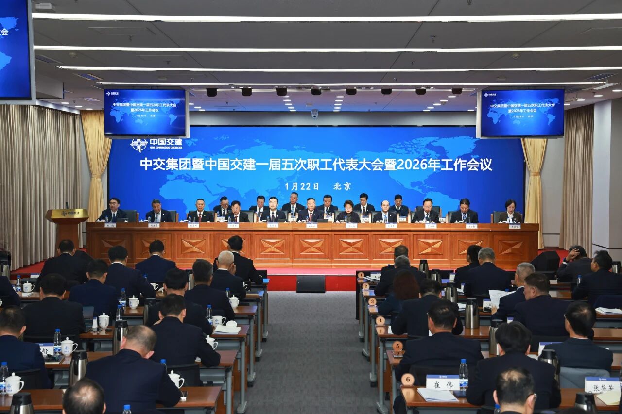 1月22日,中交集团暨中国交建一届五次职工代表大会暨2026年工作会议在中交大厦召开。会议坚持以习近平新时代中国特色社会主义思想为指导,深入贯彻习近平总书记对中央企业工作的重要指示精神,全面落实党的二十大和二十届历次全会精神、中央企业负责人会议要求,坚持以《总体指导意见》为统领,系统总结2025年和“十四五”工作,明确“十五五”和2026年总体要求、工作思路和重点任务,号召锚定“1545”战略目标,全面开创高质量发展与建设世界一流企业的崭新局面。