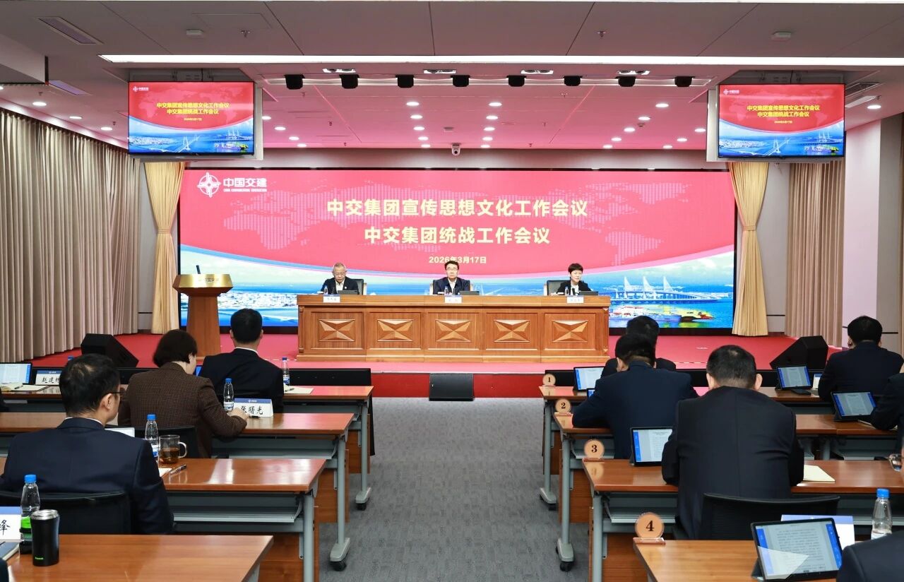 3月17日,中交集团党委召开2026年宣传思想文化工作、统战工作会议,全面贯彻落实党的二十大和二十届历次全会精神,深入学习贯彻习近平文化思想,落实全国宣传部长会议、全国统战部长会议、中央企业负责人会议、中央企业宣传思想文化工作和统战工作会议精神,以及公司年度系列工作会议部署要求,总结工作、交流经验、分析形势、部署安排2026年重点工作。受公司党委书记、董事长宋海良委托,公司党委副书记刘翔出席会议并讲话。